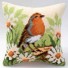 kreuzstichkissen roodborstje op boomstronk